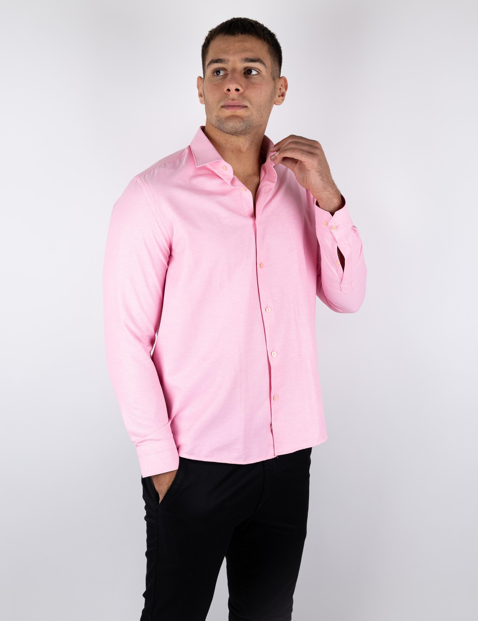 Muška košulja slim kroja u nežno roze boji, izrađena od prijatnog i elastičnog materijala koji omogućava udobnost i lakoću pokreta. Klasična kragna sa blagim otvaranjem daje otmen, ali i savremeni izgled, dok dugmad u ton boje naglašavaju prefinjenost modela. Zahvaljujući svojoj univerzalnosti, ova košulja može se nositi u poslovnim, svečanim i kežual prilikama.