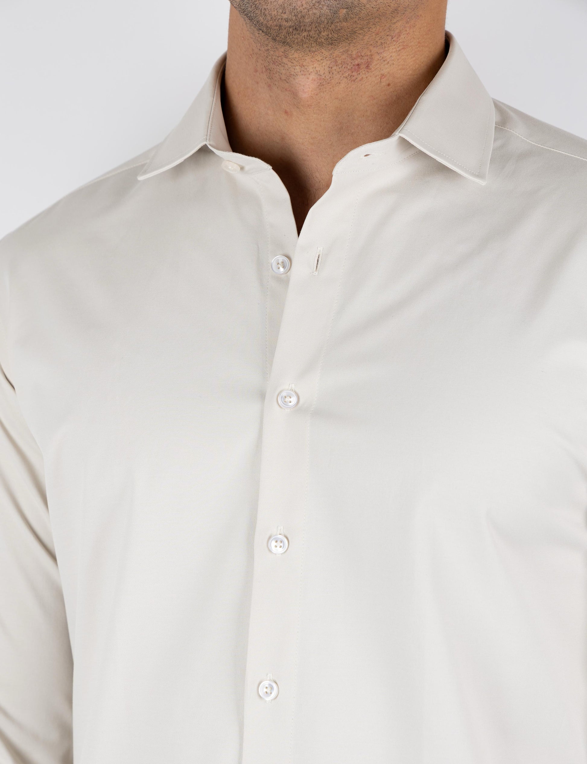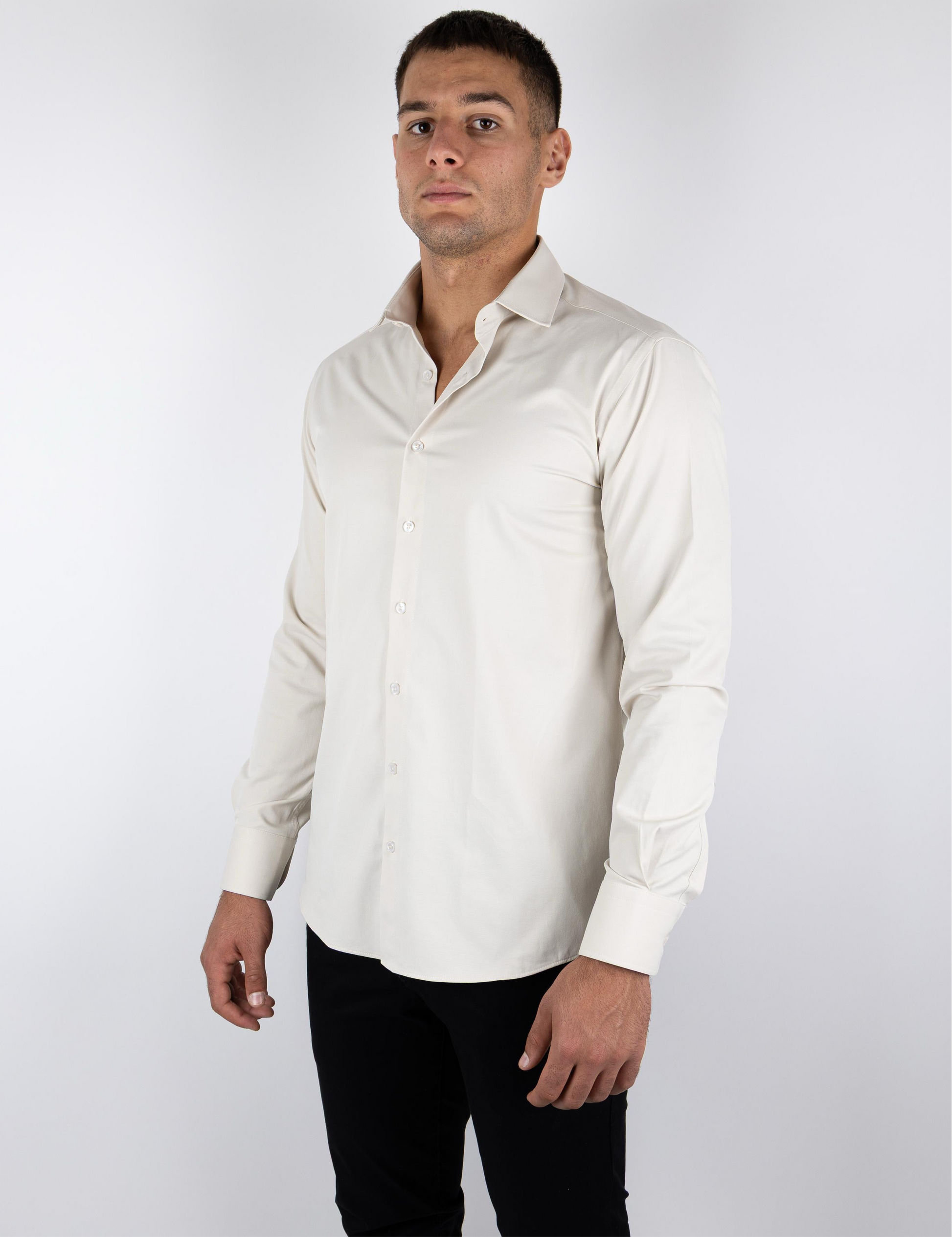 Elegantna muška košulja u vanila nijansi, izrađena od kvalitetnog materijala koji pruža udobnost, prozračnost i lako održavanje. Klasičan kroj sa dugim rukavima i modernom kragnom čini je idealnim izborom kako za poslovne prilike, tako i za večernje izlaske. Zahvaljujući univerzalnom dizajnu, lako se kombinuje uz elegantne pantalone ili farmerke, pružajući istovremeno i sofisticiran i opušten izgled.