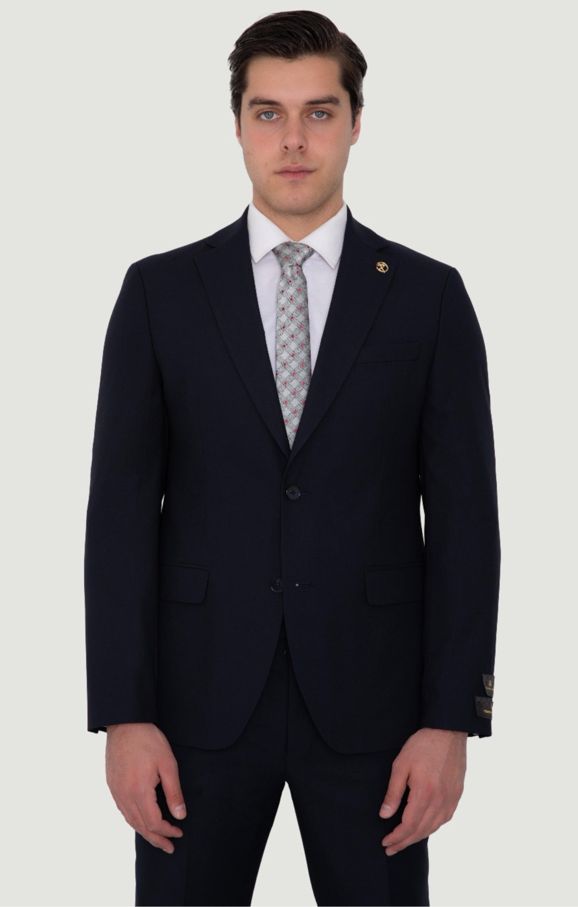 Elegantno tamno teget odelo sa jednorednim kopčanjem i klasičnim reverom. Moderan kroj naglašava mušku siluetu, dok kvalitetna tkanina pruža udobnost i besprekoran izgled tokom celog dana. Univerzalno rešenje za poslovne prilike i svečanosti, uvek siguran izbor za muškarca koji želi da ostavi utisak.